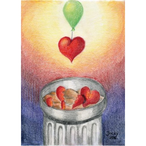 Postkarte "Wiederherstellung des Herzens", 105x148 mm, Hochformat. Erläuterungen zu den Postkartenmotiven von Jocky auf http://www.jocky.de/postkarten.