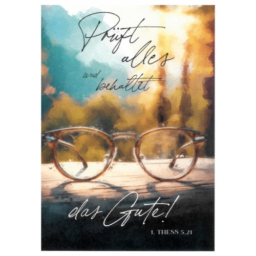 Postkarte "Prüft alles und behaltet das Gute" Motiv Brille (Undarstellbar)