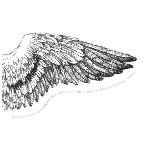 Wir können die Engel zwar nicht sehen, doch diese stilvolle Zeichnung eines Engelsflügels erinnert dich trotzdem an das, was Gottes Wort verspricht: Er hat seine Engel gesandt, um Dich zu schützen und zu retten.