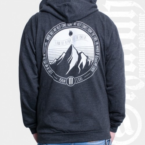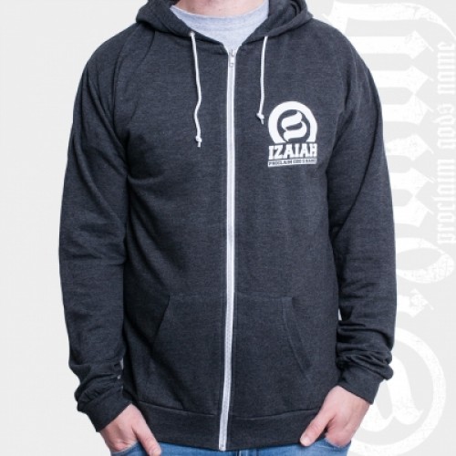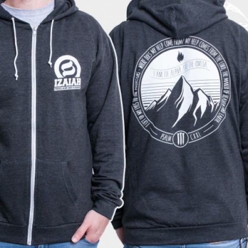 Text Design: vorne auf der linken Brust: Izaiah-Logo (ca. 11x9 cm), hinten mittig "I lift my Eyes up to the Mountains, where does my Help come from? My Help comes from the Lord, the Maker of Heaven and Earth - Psalm CXXI"