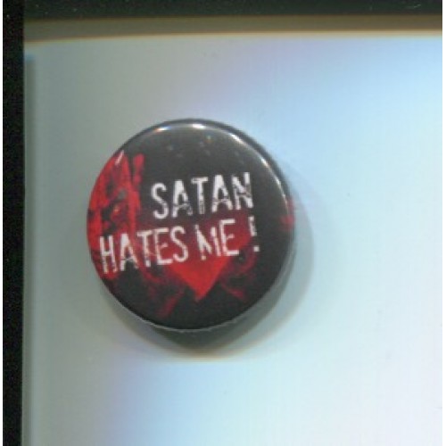 Button 25 mm Satan hates me (weiß auf schwarz und rot)