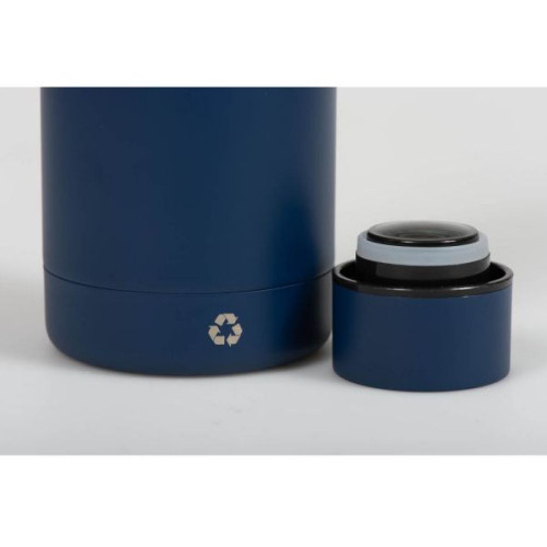 Stylische Trinkflasche für unterwegs aus recyceltem Edelstahl, doppelwandig, Füllmenge 500 ml. Veredelt mit einem Druckverfahren, wodurch das Motiv „Jesus – Mein Anker“ auf der mattblauen Oberfläche leicht erhaben steht. Im Einzelkarton verpackt.