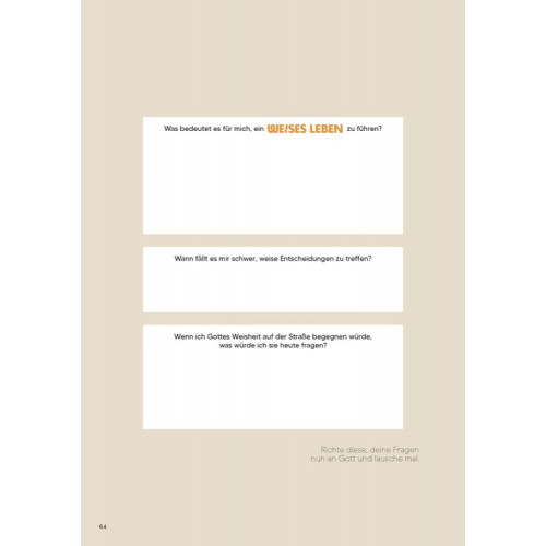 Gönn dir eine Pause voller Schönheit und Poesie! Hier findest du Orientierung und Kreativität für deine Stille Zeit. Die Designerin Stennie und die Content Creatorin Sarah Marie laden dich mit diesem Buch zu einer andächtigen Ruhepause im Alltag ein. Konzipiert als Bibellesetagebuch begleitet es dich durch das Buch der Sprüche. Jedes der 31 Kapitel vertieft einen Aspekt der biblischen Weisheitsliteratur mit einem lyrischen Text, regt mit Reflexionsfragen zum Tiefergehen an und gibt Raum, um eigene Gedanken zum gelesenen Bibeltext festzuhalten. Das stimmige Design macht aus diesem Buch ein Highlight für deine persönliche Zeit mit Gottes Wort.