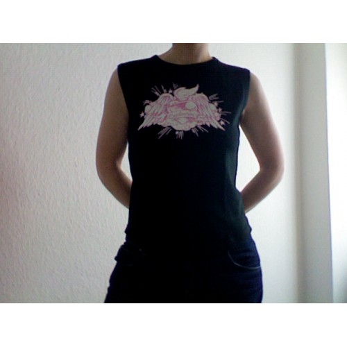 Tanktop mit rosa Frontprint SALVATION auf Brusthöhe (ca. 20x25 cm), von Promodoro. Nur in schwarz. 100 Prozent Baumwolle.