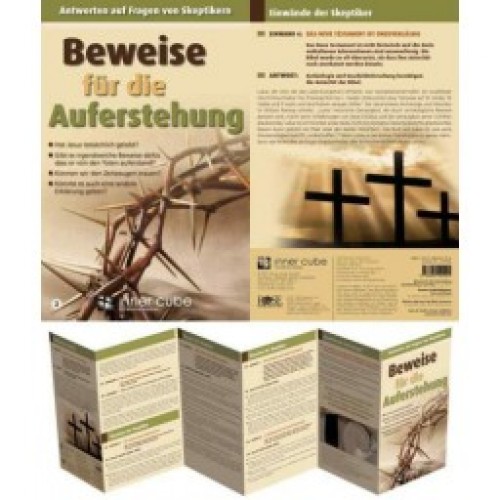 Beweise für die Auferstehung. Studienfaltkarte 2. Antworten auf Fragen von Skeptikern. Aus der Reihe "Bibelwissen kompakt mit Studienfaltkarten". Verlag: inner cube GmbH, ISBN: 9783942540025, Einband: Leporello, 14 Seiten, Format: 14,1 x 21,7 cm (geschlossen)