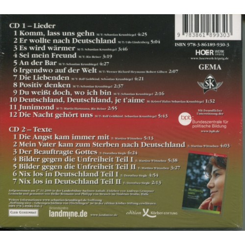 Sebastian Krumbiegel & Kristof Hahn: Ängste und Träume. Eine musikalische Lesetour zum Buch "Hoffnung säen". 2 Audio-CDs. CD 1 mit 12 Liedern, CD 2 mit 7 gelesenen Texten. Erschienen 2006 bei Edition Körber-Stiftung, ISBN 978-3-86189-930-3