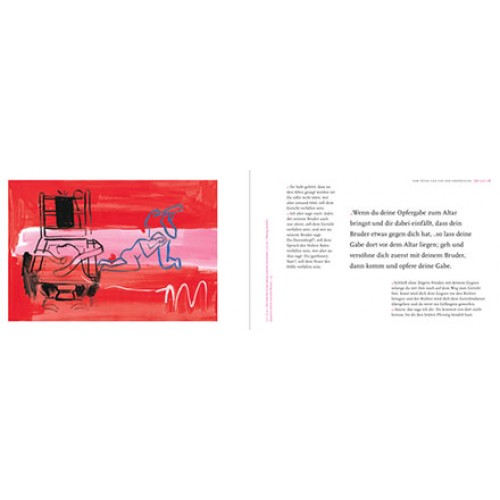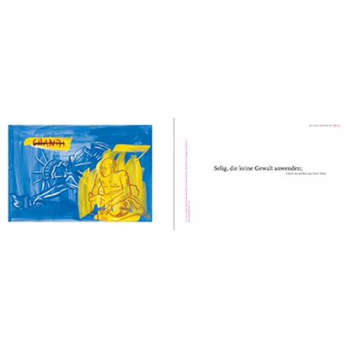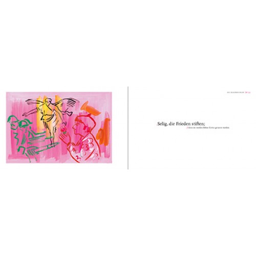 Die Bilder wiederum folgen nur auf dem ersten Blick der bekannten Tradition, Texte zu illustrieren. Darüber hinaus aber erleben wir eine Auseinandersetzung im Spannungsfeld von Anspruch der Bergpredigt und unserer Wirklichkeit. Den Bibeltext auslegen wollen die Bilder nicht. Eher können sie als Anregung verstanden werden, sich auf jeweils eigene Weise mit der Bergpredigt zu beschäftigen. – Kurt Fütterer
